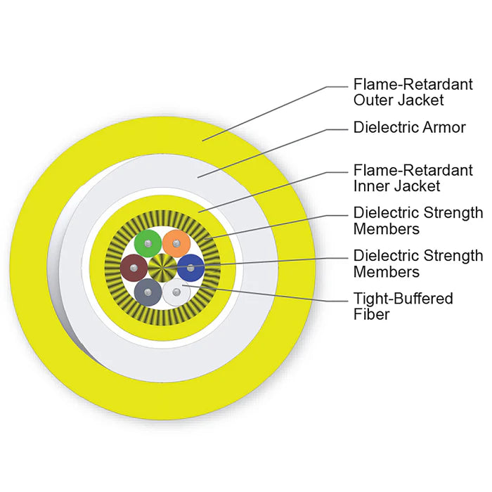 CORNING 6 STRAND SINGLE MODE FIBER (OS2) DIELECTRIC ARMOUR PLENUM YELLOW OD .401"